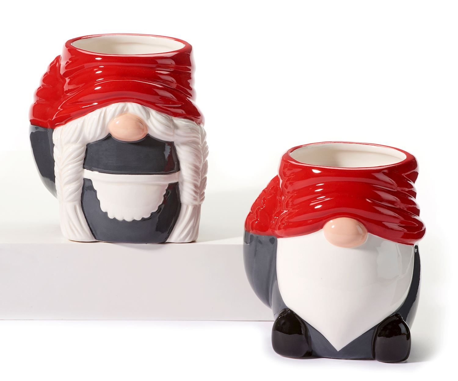 Keep your hand cozy with this mug designed in a handwarmer style and featuring a gnome design. Available in 2 assorted designs. 18 oz. FDA Approved. Hand Wash Only. Ceramic.