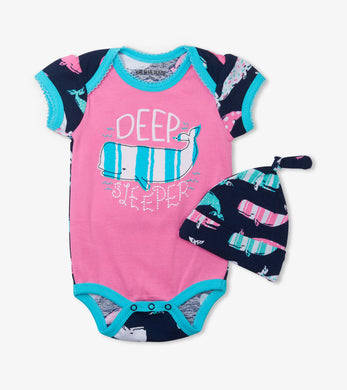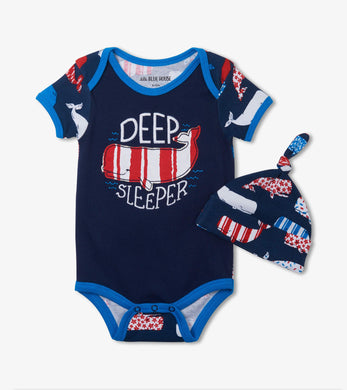 Baby Onesie With Hat - Nautical Blue Deep Sleeper