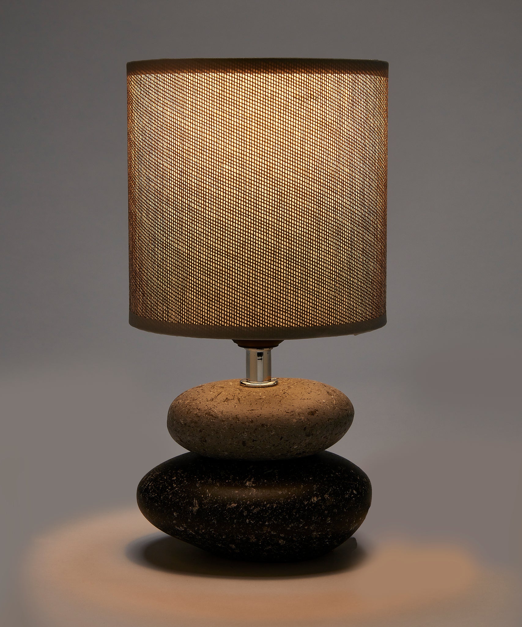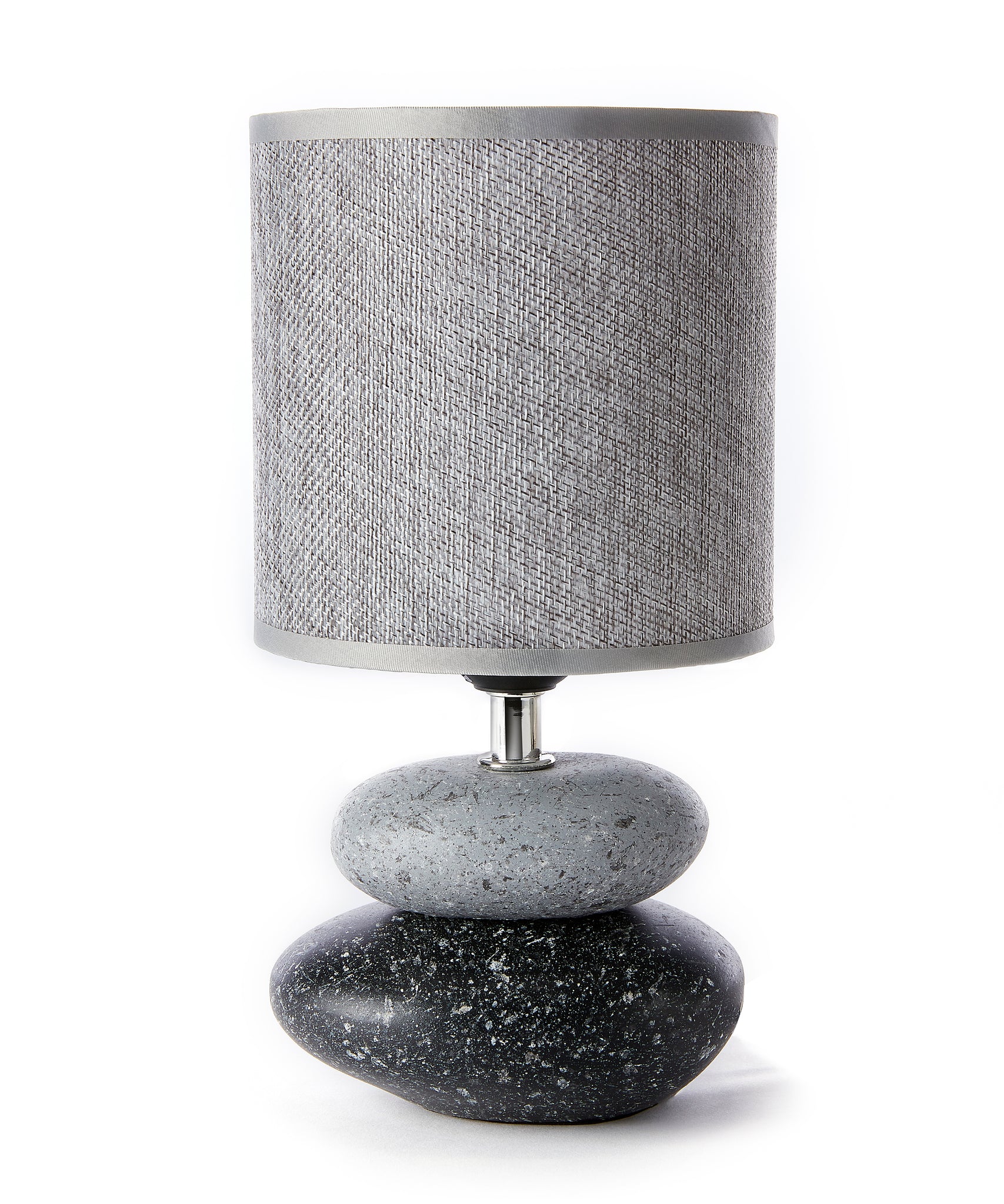 Enjoy the combination of nature-inspired design and modern sophistication with this grey and black table lamp, the perfect addition to your home décor. The lamp's ceramic base is expertly crafted to resemble harmoniously stacked stones, offering a charming blend of rustic charm and contemporary style. Requires E26 LED bulb (not included). CUL/UL approved. Shade Size - 5.1x5.1x5.1. Easy access for On and Off switch, you can turn on and off easily by just simply sliding the gear switch on the cable. Ceramic, Flax.
