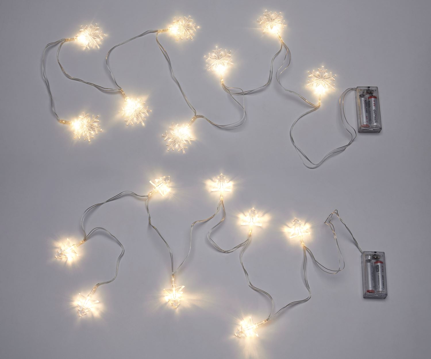 Enjoy the radiant multi color glow and festive flair that these lights bring, as they light up your home with the vibrant spirit of the holiday season. These lights can be intertwined with your Christmas tree branches, lending a vibrant and fresh touch to your tree, or simply adorn your fireplace mantel with a string of these lights to create a warm and welcoming focal point in your living room. Available in 2 assorted designs: Snowflake, Tree. 18 pieces in a displayer (9.2x5.2x6.6) at no charge. Requires 2 AA batteries. PP, Wire, Metal.